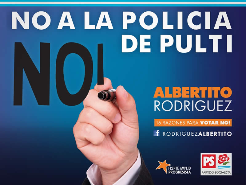 La campaña "No a la policía de Pulti" fue una acción pensada para el posicionamiento de candidatos, en el marco de una consulta popular, que tenía el fin de legitimar la creación de una policía municipal.